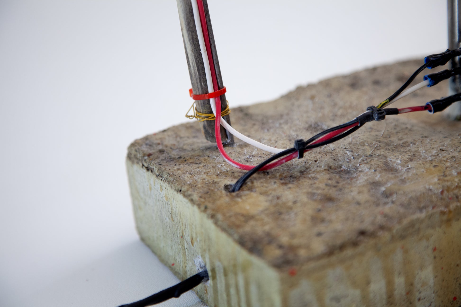 Materials: Concrete, steel, wire, sticks, thread, hardware